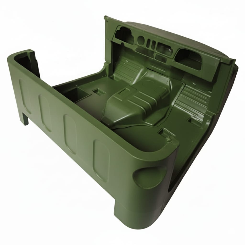 O Caixote (Carroceria Parcial) para Toyota Bandeirante Pick-up é a solução definitiva para quem busca renovar seu veículo com um material imune à corrosão e extremamente resistente. Fabricado em fibra de vidro reforçada, este componente substitui a parte traseira da cabine (curvão e assoalho interno), sendo ideal para restaurações ou preparações para trilhas pesadas.