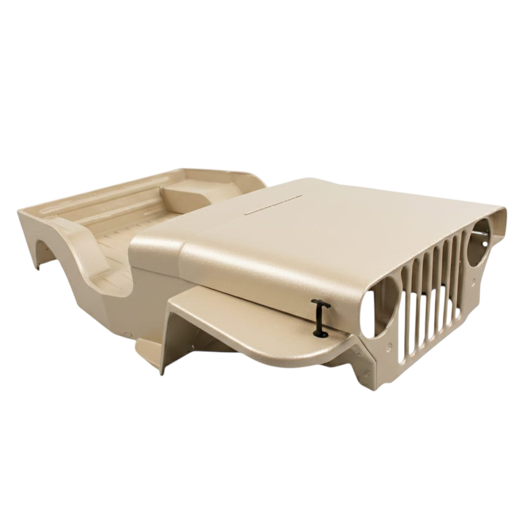 Esta carroceria em fibra de vidro para o Jeep Willys CJ2A é a solução definitiva para quem busca restaurar ou preparar seu jipe para o off-road, eliminando definitivamente problemas com ferrugem e corrosão, especialmente em regiões litorâneas.