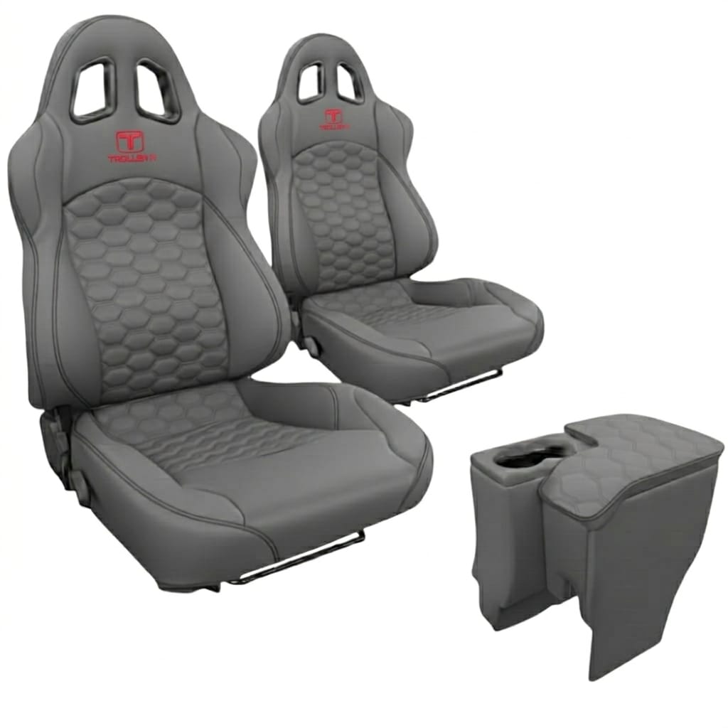 Kit Bancos Esportivos Rallye Design Stradale em Couro Cinza (Par) + Console Central para Troller T4