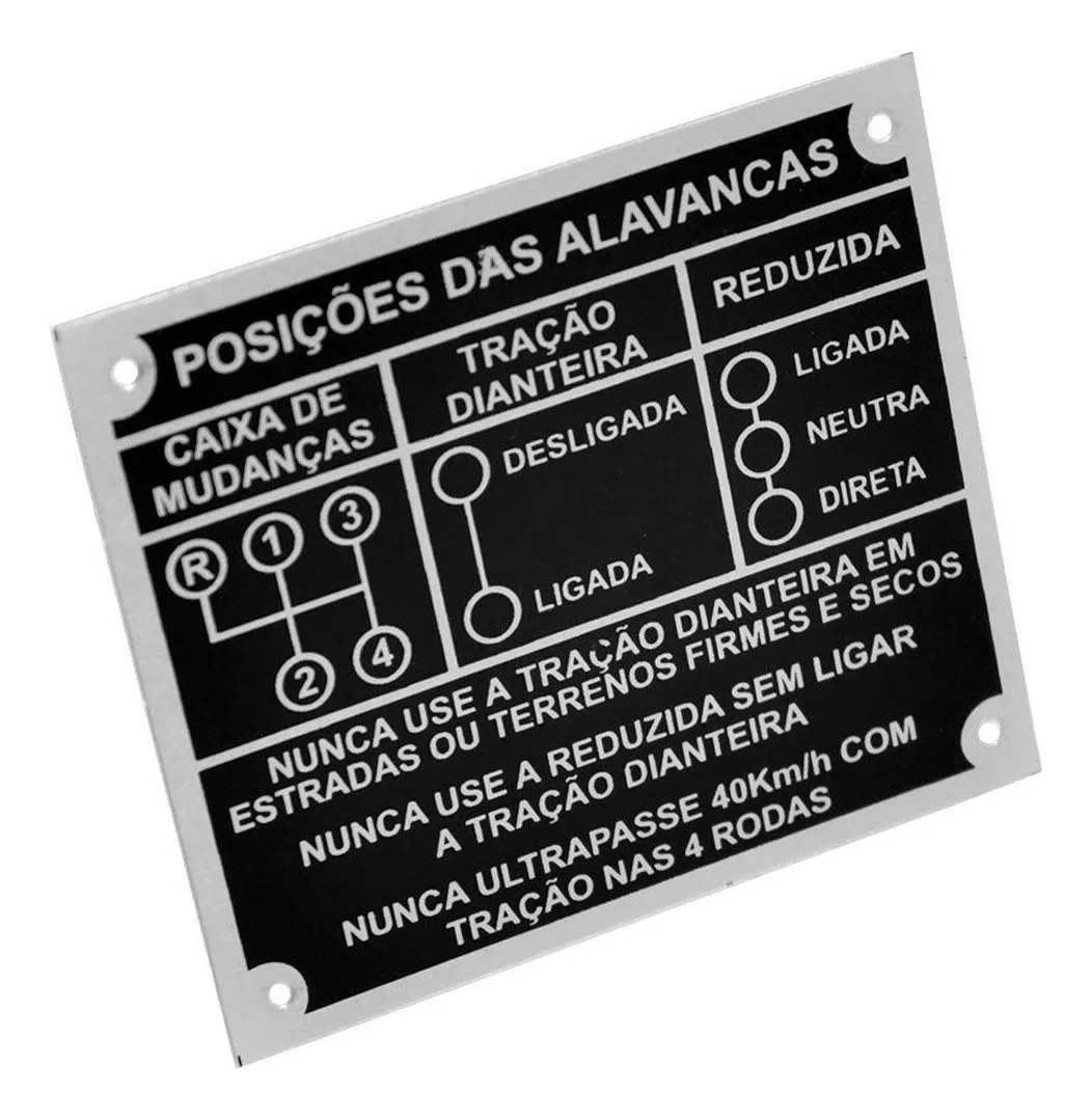 Emblema Plaqueta Painel Câmbio 4 Marchas Jeep Willys Rural F75 - Tração Dianteira e Reduzida