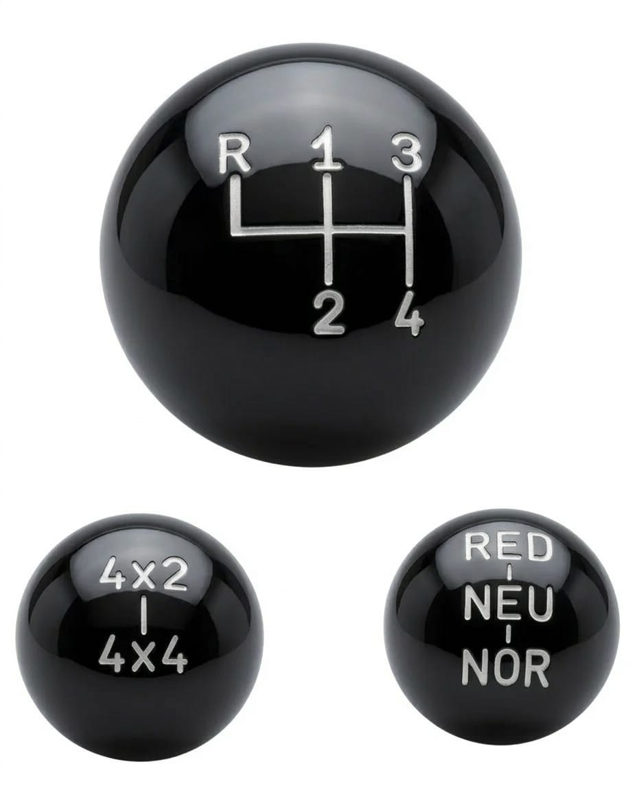 Renove o interior do seu Jeep, Rural ou F75 com este Jogo de Bolas de Câmbio completo! Com design clássico, cor preta e indicação de marchas estampada, oferece o visual original que seu 4x4 merece, garantindo conforto e durabilidade na restauração. Compatível com câmbio 4 marchas Clark.