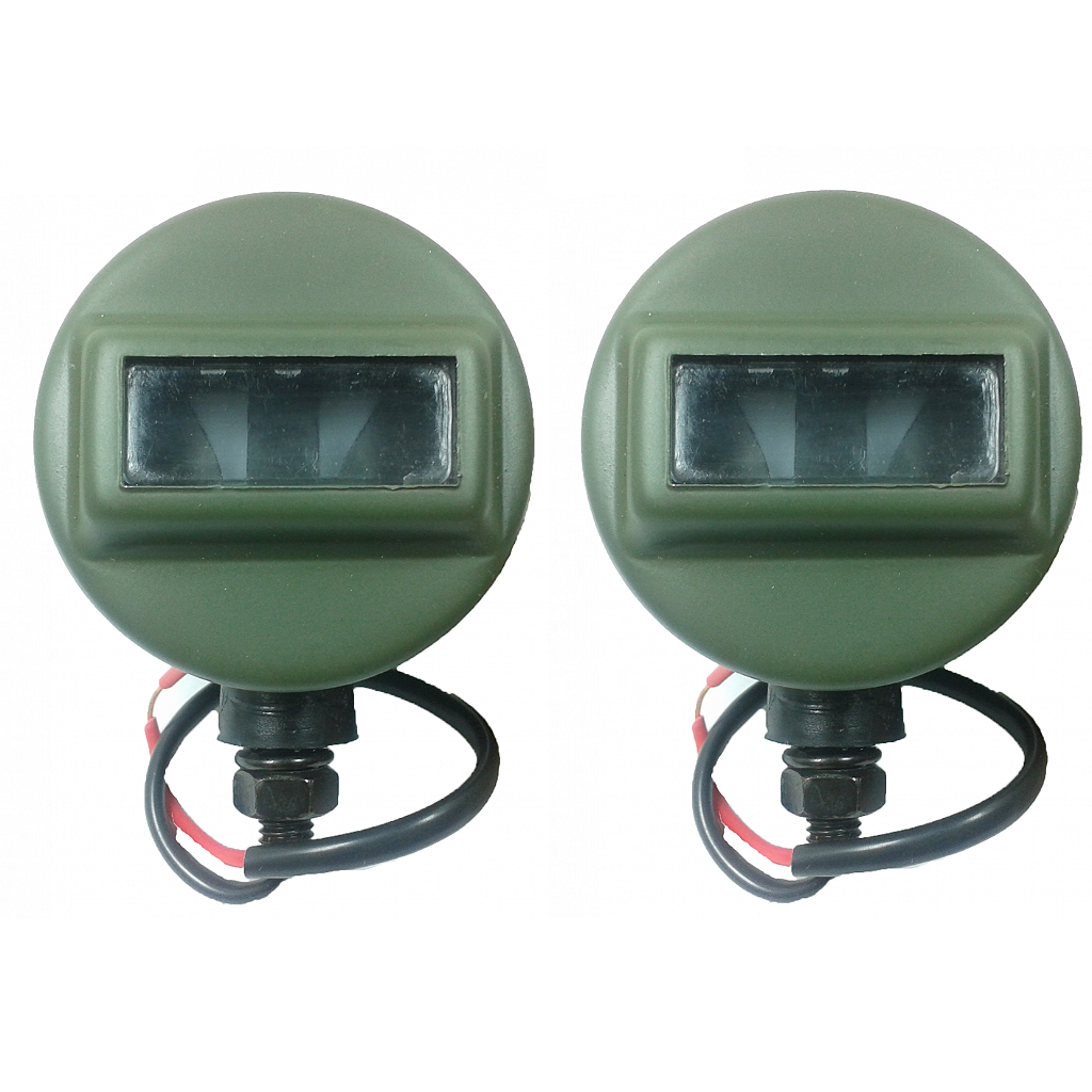 Detalhes: A lanterna possui um soquete no qual está instalada uma lâmpada de um filamento que ilumina os rasgos brancos da iluminação militar. A lanterna não é fornecida com a lâmpada, que pode ser de 12v ou 24v.