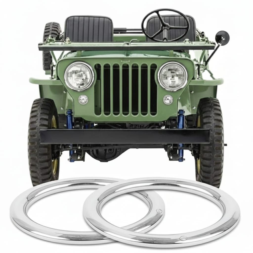Dê um toque de brilho e originalidade ao seu Jeep Willys clássico com o Aro de Farol Externo Cromado. Reprodução de alta qualidade com acabamento espelhado, ideal para restaurações dos modelos CJ2A e CJ3A entre 1946 e 1952.