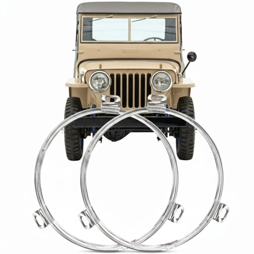 Recupere o visual clássico e original do seu Jeep Willys CJ2A com o Aro Interno de Farol Cromado. Essencial para a fixação firme do bloco óptico (foco) no suporte da carroceria, este aro cromado de alta qualidade une funcionalidade e acabamento refinado para modelos antigos, garantindo que seu Jeep mantenha a originalidade com um toque de brilho.