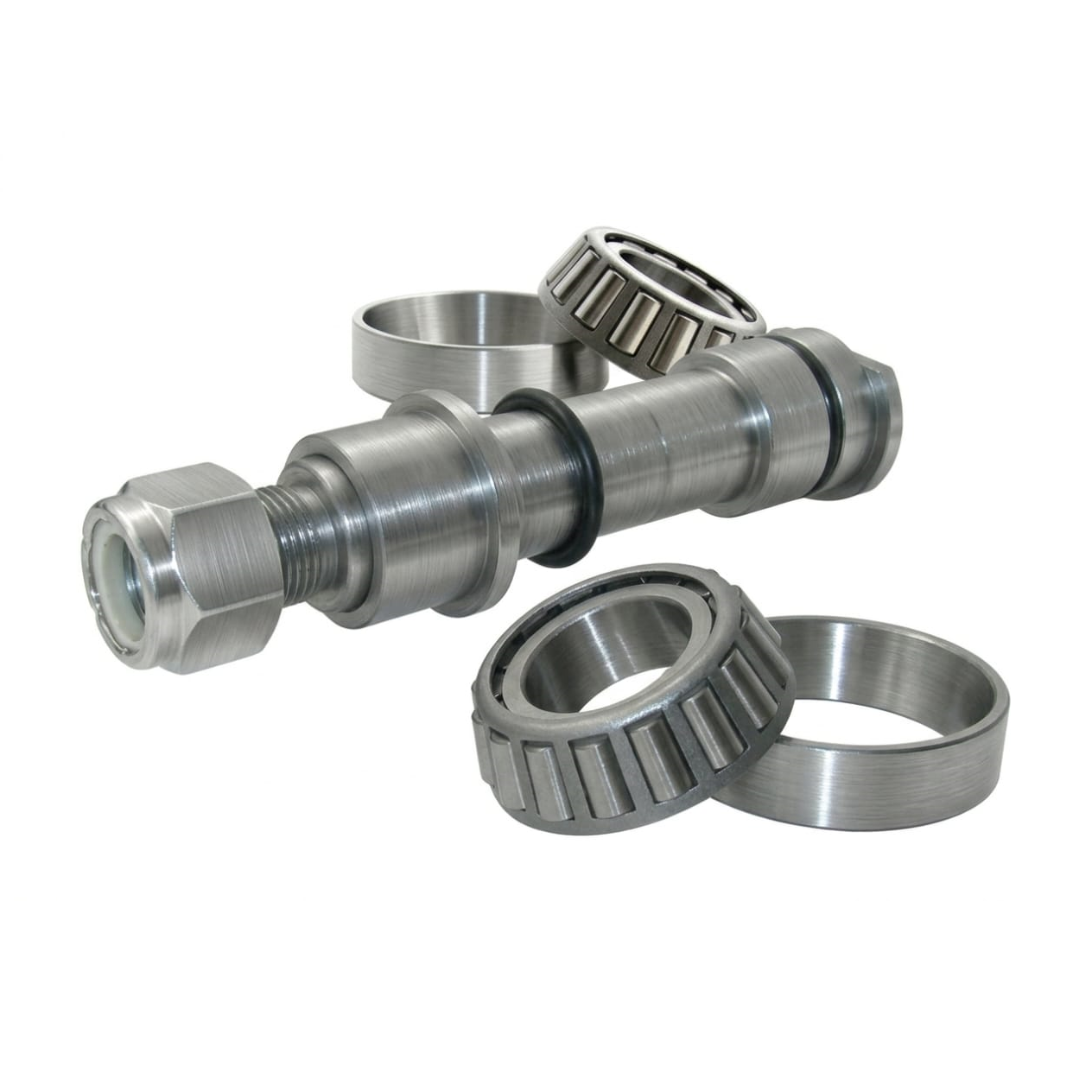 Nossa peça é fabricada com aço de alta liga e passa por um tratamento térmico de cementação e retífica de precisão, garantindo dureza superficial máxima para suportar o atrito constante dos roletes.